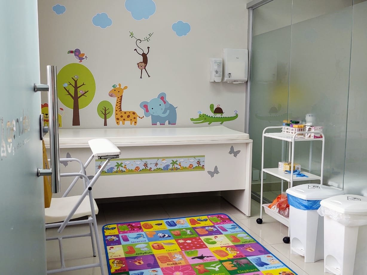Preparamos um ambiente seguro e divertido para proporcionarmos uma experiência sensacional para coleta dos exames dos nossos kids! A sala de espera para crianças possui uma brinquedoteca embaixo de uma árvore indoor!